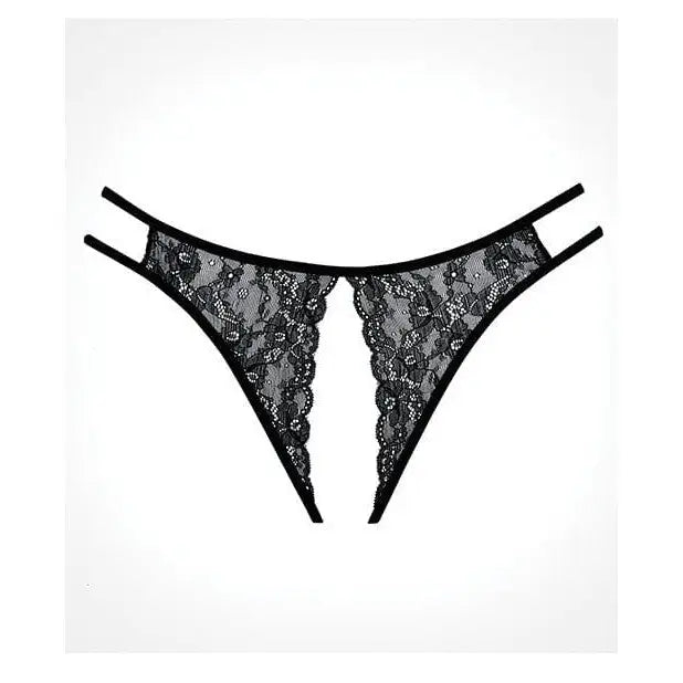 Feel alluringly irresistible as the sweet, scalloped lace coyly teases with a flirtatious peekaboo. With dual slender straps hugging your hips, the sheer mesh back adds a cheeky touch to this crotchless panty.