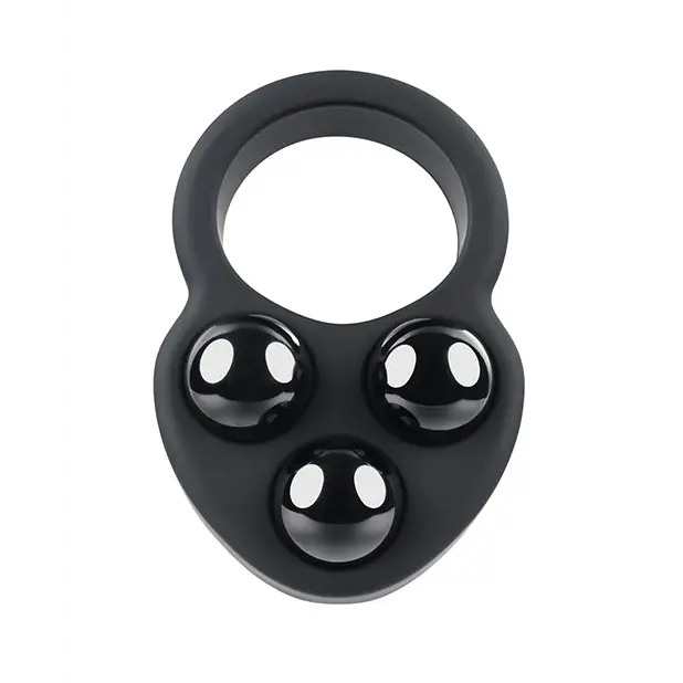 Experience the unique and playful design of this silicone training ring, complete with a rounded wing that supports up to three small weights. Each grooved hole holds a 2-ounce steel ball for added fortification during playtime. Made from creamy smooth silicone and featuring a stretchy and comfortable design, this ring can be easily adjusted to support incremental increases up to a total of 6 ounces. Plus, it's submersible in water and easy to clean, making it the perfect addition to any fun and quirky activity. Product dimensions include: height of 3.03", depth of 1.39", and width of 2.06".