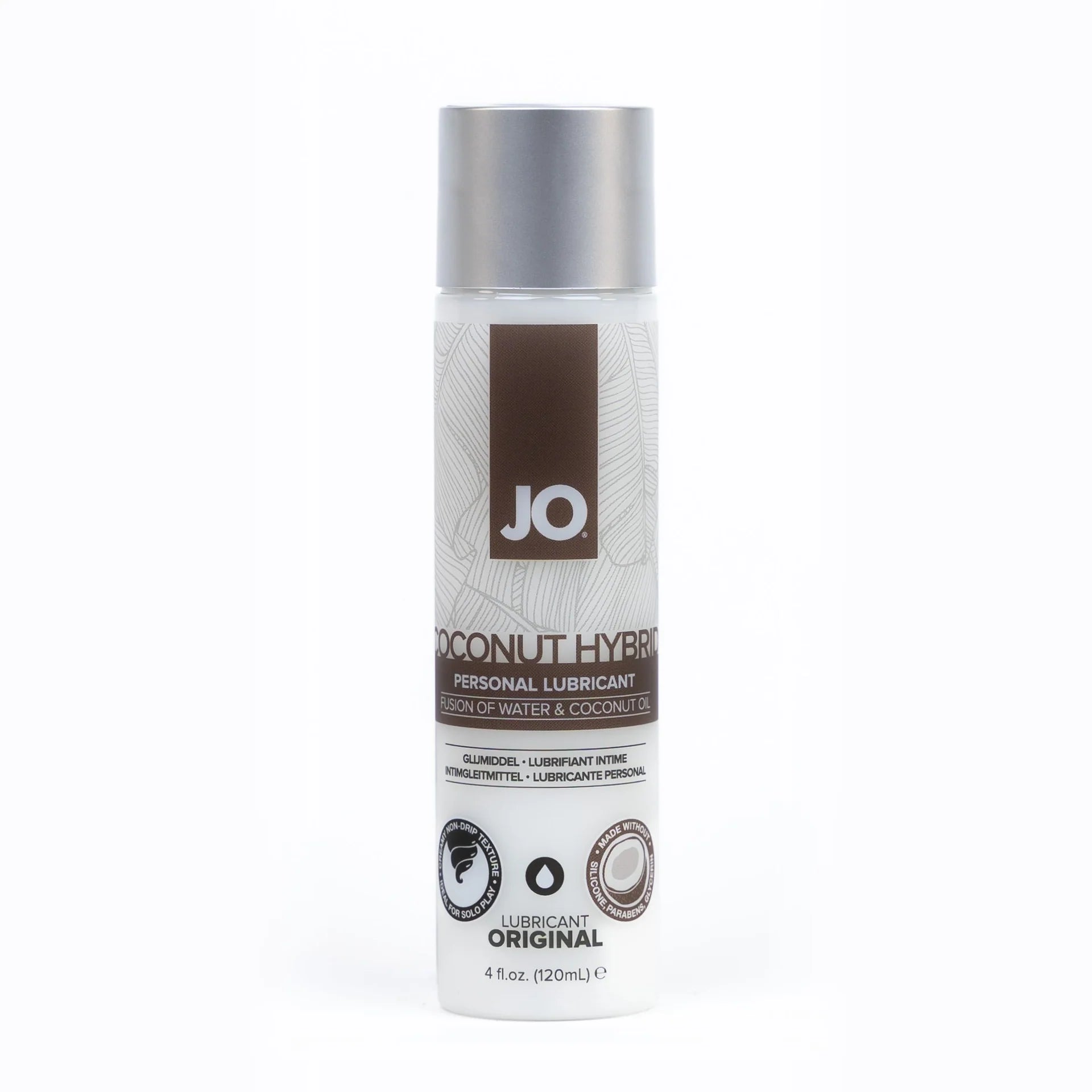 JO Coconut Hybrid lubricant is our unique blend of premium coconut oil and water-based ingredients. It offers a rich glide that melts against the skin for the perfect slide during solo, partnered, and toy play. Its soft, creamy formula absorbs naturally for a nourishing and delicate finish that’s never greasy or oily.